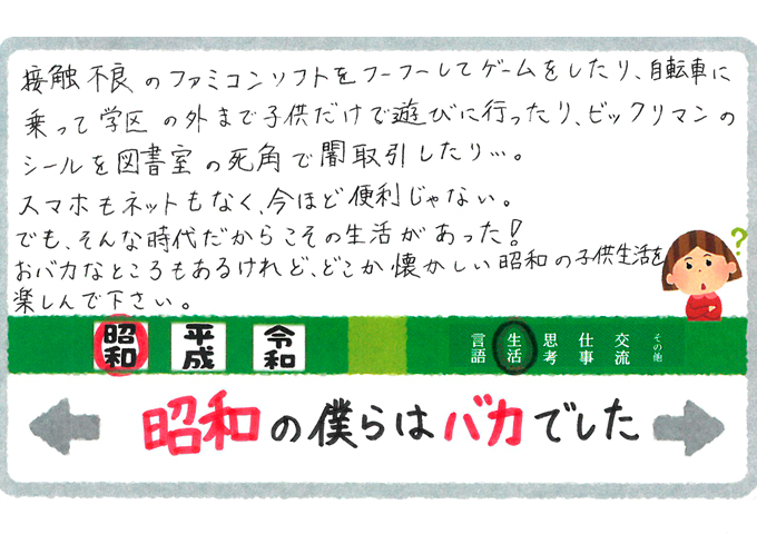 昭和・平成・令和と年号が移り変わり行く世の中に、ついて行けてますか? 昔のことはよくわからない、古臭い、ありえない。ですか?