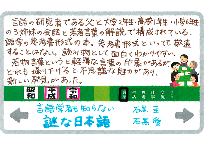 | 言語学者も知らない謎な日本語:研究者の父、大学生の娘に若者言葉を学ぶ | 石黒圭、石黒愛著 | 814/Is | POPを見る |