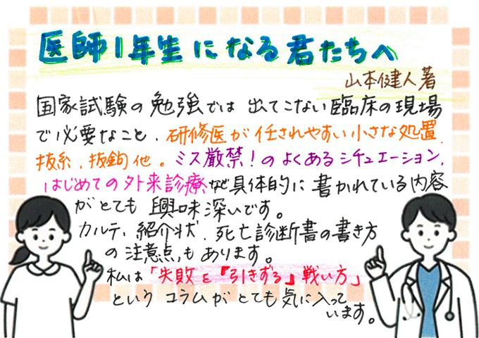 | 医師1年目になる君たちへ:誰も教えてくれない些細で、とても大切なこと | 山本健人著 | 498.1/Ya | POPを見る |